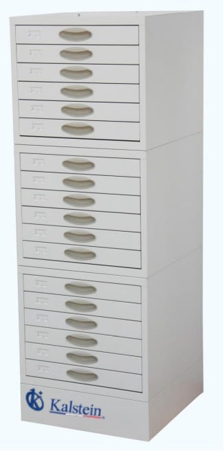 The cabinet has 18 drawers , distributed in 3 modules (6 drawers per module).